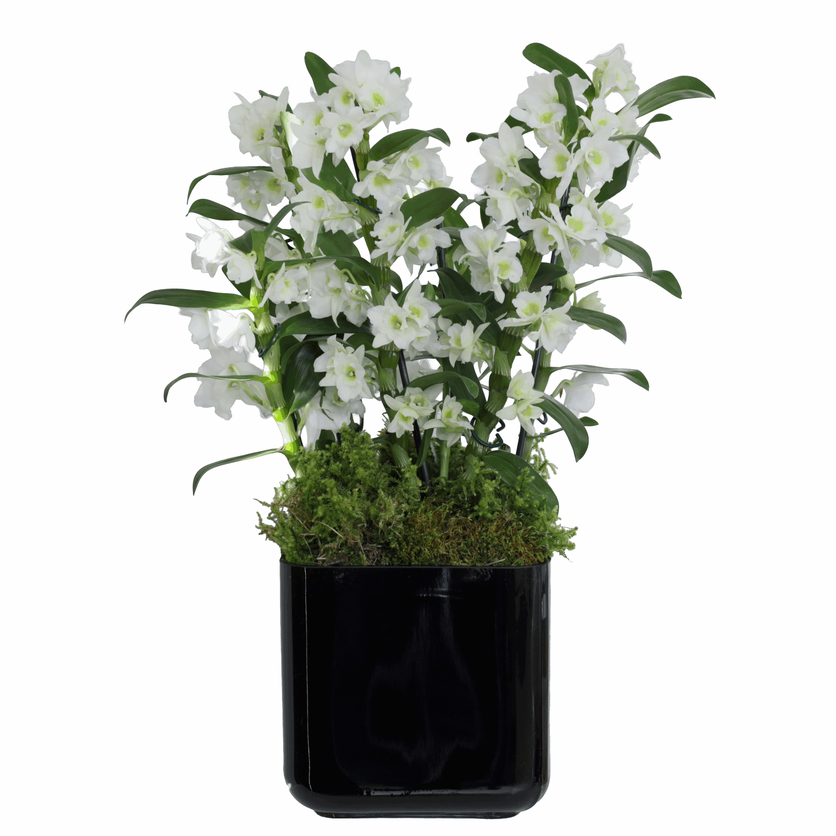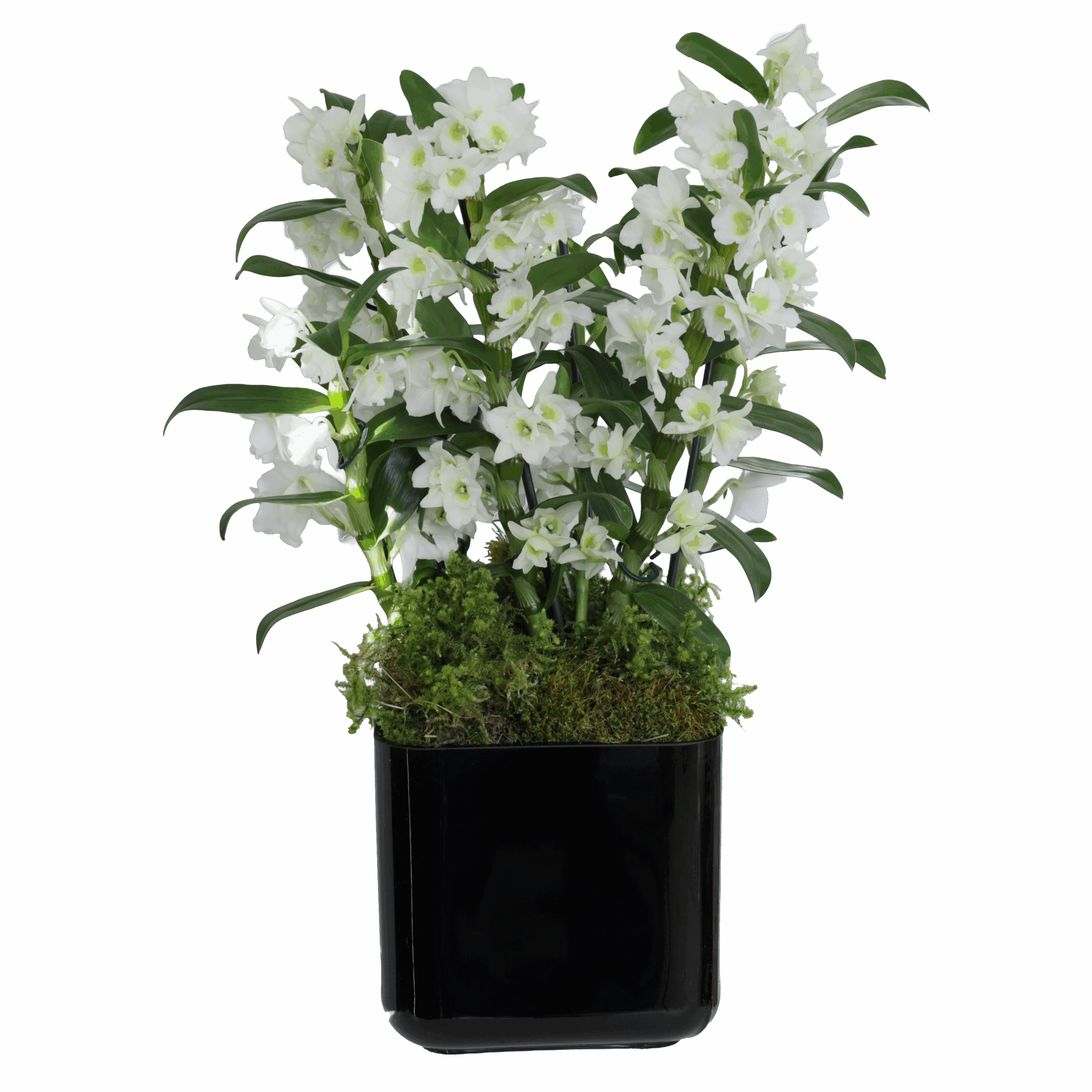 La composition DENDROBIUM met à l’honneur l’orchidée dendrobium blanche, reconnue pour sa finesse et son élégance naturelle. Présentées dans une verrerie raffinée, ces tiges d’orchidées se distinguent par leurs fleurs abondantes et leur allure aérienne, apportant une touche de pureté et de sophistication à tout intérieur.